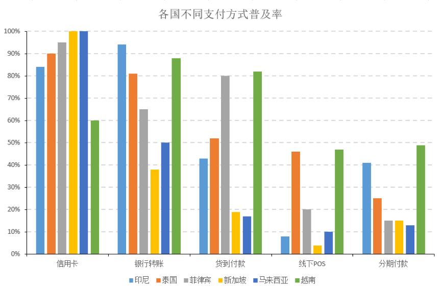 每个国家都有自己独特偏爱的支付方式,除新加坡和马来西亚以外,其他东南亚国家对于货到付款等线下的付款方式普及率较高。并有调查表明,该地区大多数消费者仍存在对于线上电子支付等的不信任和担忧。电子支付在未来的发展潜力不容小觑,电商为要积极为消费者提供安全便捷的电子支付方式才是未来的关键。