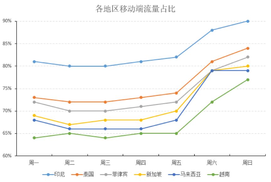 与此同时,移动手机的崛起也在互联网市场中占据很重要的地位,目前东南亚地区电子商务流量,移动流量的份额已高达网站总流量的72%。