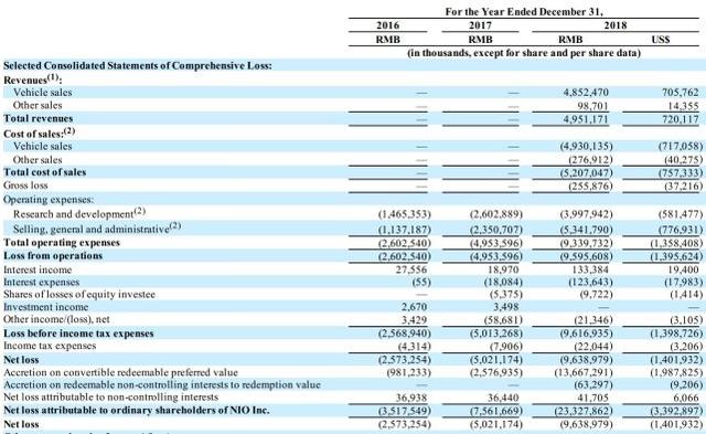 蔚来总收入为人民币15.08亿元 (2.197亿美元),比2019年第一季度减少7.5%。高于分析师预期的13亿元。汽车销售额分别为人民币14.14亿元 (2.061亿美元)比2019年第一季度减少7.9%,
