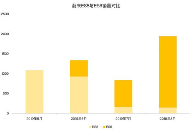 根据蔚来$(NIO)$汽车官方公布了最新的交付数据,7月份蔚来共交付837辆,其中包含673辆ES6,164辆ES8。蔚来8月份交付的车辆为1,943辆,其中包括146辆ES8和1,797辆ES6 。如下图,从销量对比可以看出,在蔚来推出ES6之后,随着ES6销量增长,ES8销量锐减。