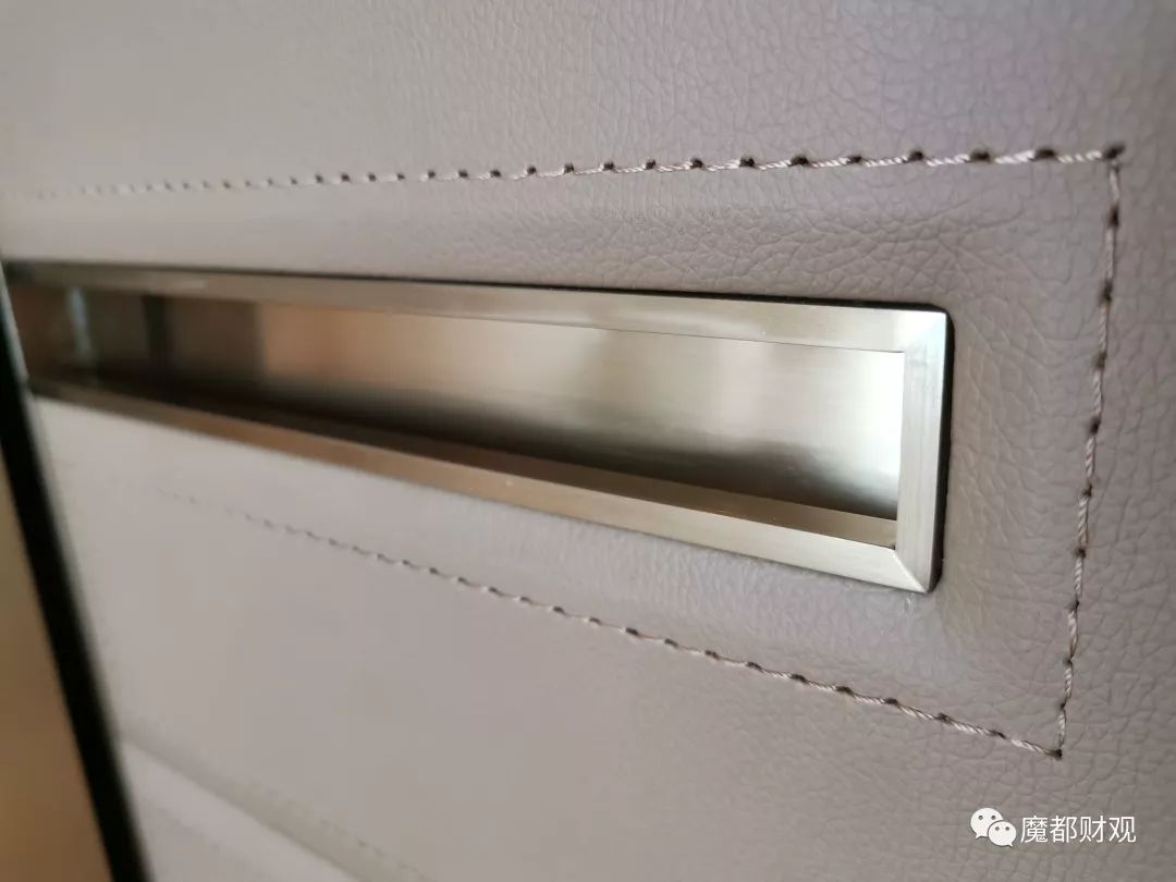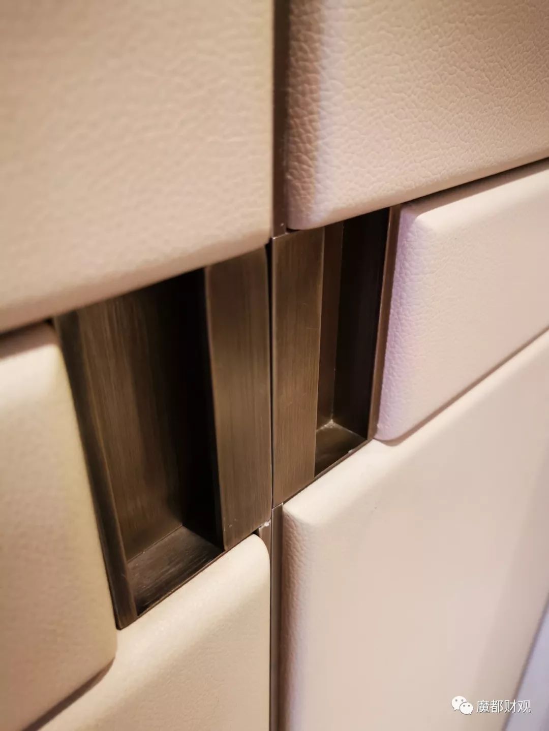 内嵌式真皮衣橱把手,缝线体现着精致;
