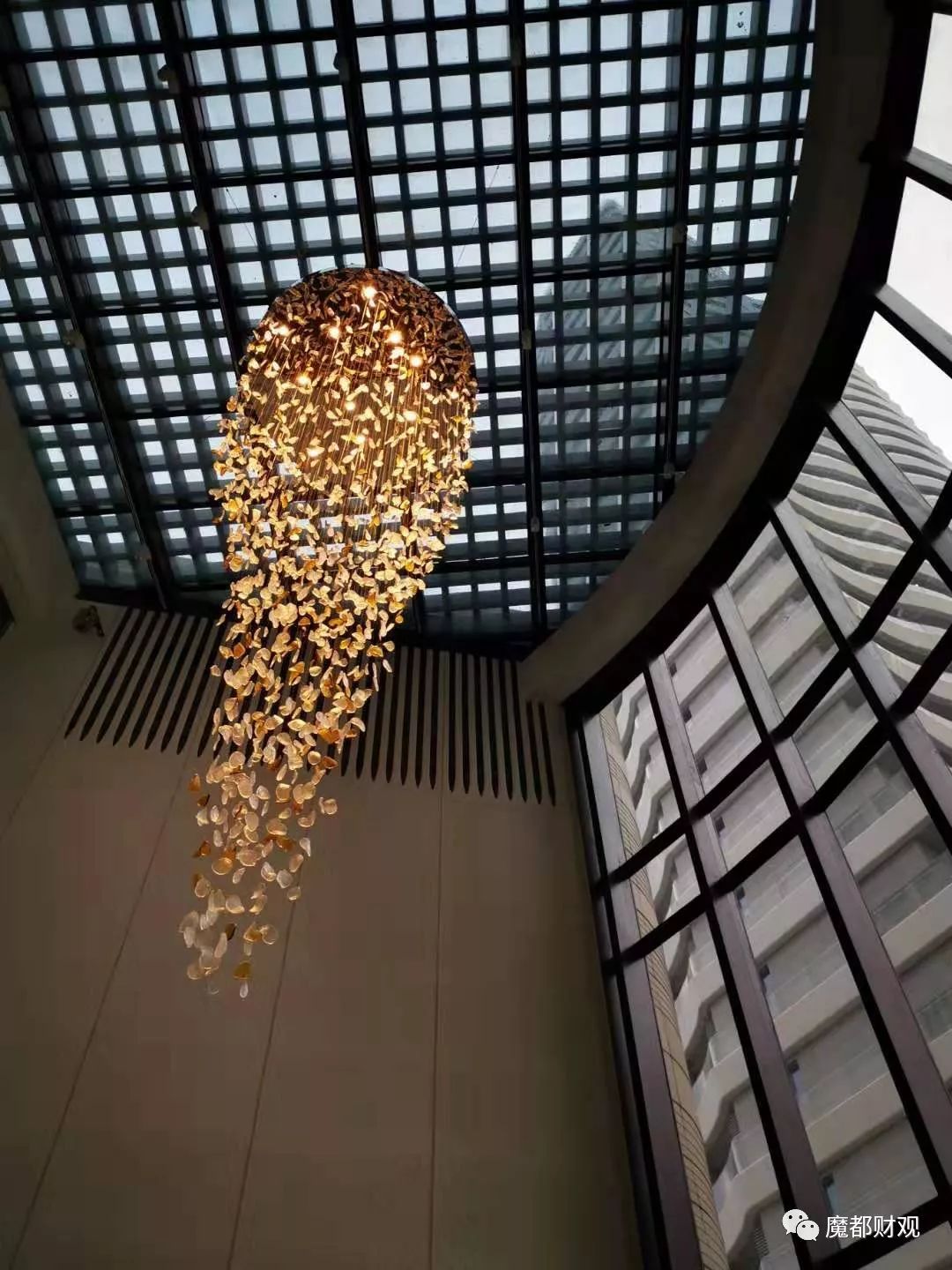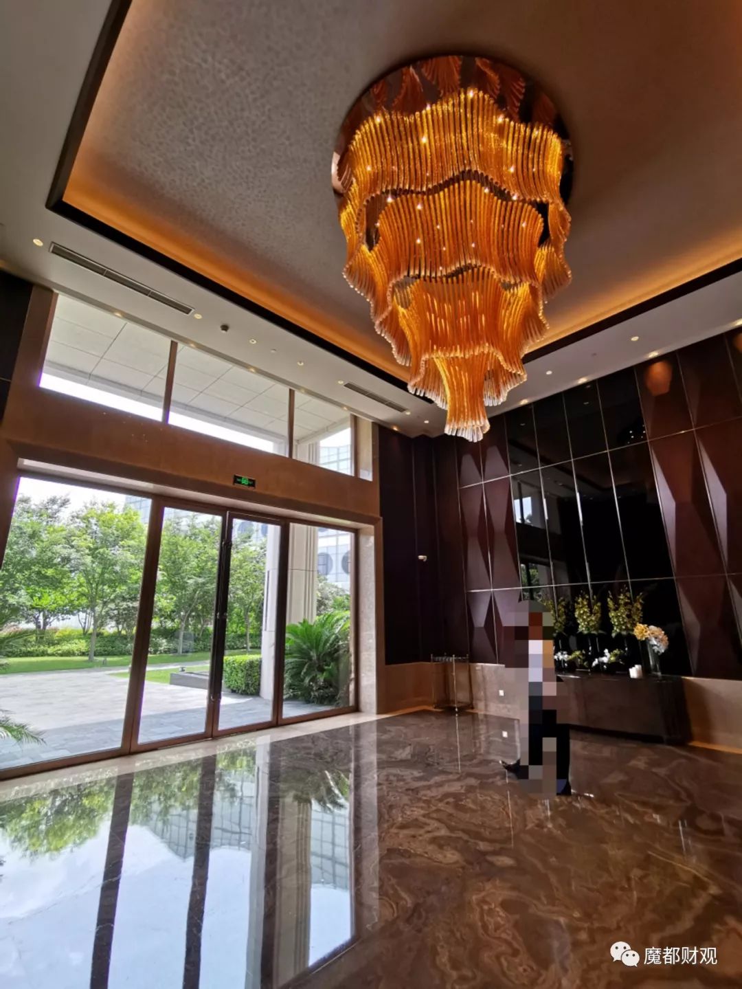 下图是上海古北壹号项目的大堂,大吊灯的垂坠感,让这个项目识别度很高。