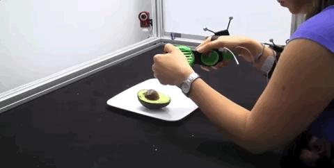 现在该研究还处于早期阶段,Lopes 的系统能够推动用户执行手势,例如挤压、转动、推开、掉落、摇动、抬高等,并能组合这些小动作来实现复杂的连贯动作。