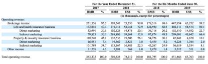 从收入结构来看,慧择通过平台销售保险合作伙伴承销的保险产品而产生的佣金为最主要来源,分别占2017年和2018年总收入的95.5%和99.0%。这一比例在2019年上半年也达到了99.2%。其中,来自人寿险和健康险的佣金收入分别占到全年收入的50.4%和72.9%,慧择也预计这项收入会继续成为公司主要的收入来源。