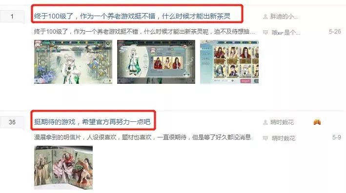 《茗心录》则以“茶”作为核心元素,不涉及其他菜系或食材,游戏中的可控角色就是各式各样的茶。但由于该游戏出品方并非背靠大厂,所以更新频次较慢。从贴吧用户反馈来看,上线一年左右已经沦为“养老游戏”。没有新茶灵的全图鉴玩家渐渐选择弃游,如今市场上《茗心录》的存在感越来越低。