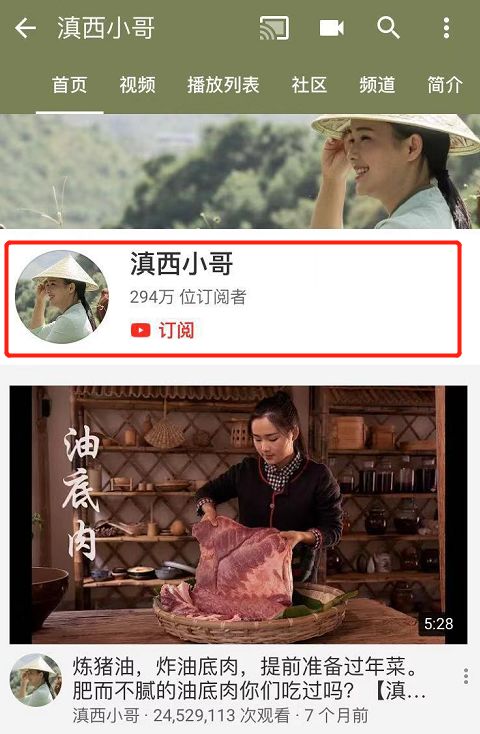 与李子柒风格相似、着力展现云南美食的博主滇西小哥,来自papi酱的MCN机构PapiTube。其在YouTube上的订阅数虽不及两大头部,但深受东南亚地区的订阅者欢迎。