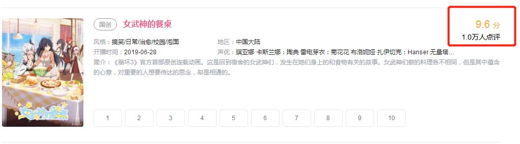 《女武神的餐桌》是《崩坏3》的衍生作品,与原作的关系类似于《卫宫家的饭》与《Fate》的联系。这部作品B站评分还不错,但硬糖君个人觉得风格还是太日漫,无论是名字还是人物造型。如果对《崩坏3》毫无了解,乍看第一反应大概会觉得是配音日漫而非国漫作品。
