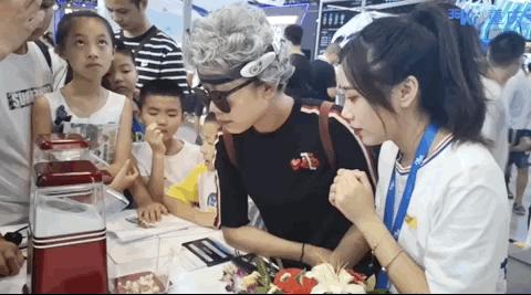 三嬢智博会上真人演绎炸“脑花”