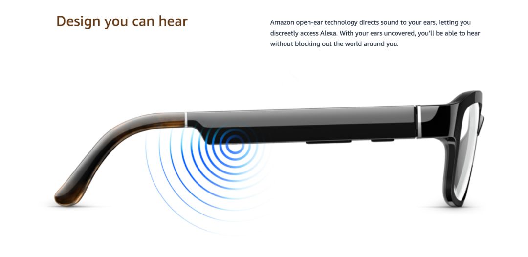 耳机之外,亚马逊也加入了今年大厂做眼镜的风潮。眼镜加声音的概念,从2016年开始,创业公司、音频大厂在骨传导和定向声场方面,屡有尝试。这不是一个突破性的设计,这个概念也已经验证好几轮了。