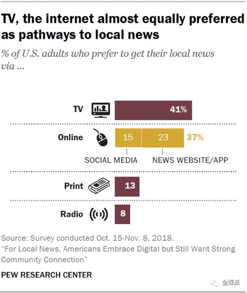 但在本地新闻这一赛道上,网络渠道有望弯道超车。37%的受访者表示他们更愿意通过线上渠道获取本地新闻,这与选择电视的比例(41%)已经相当接近。大约四分之三(77%)的受访者表示,互联网在获取本地新闻方面非常重要。