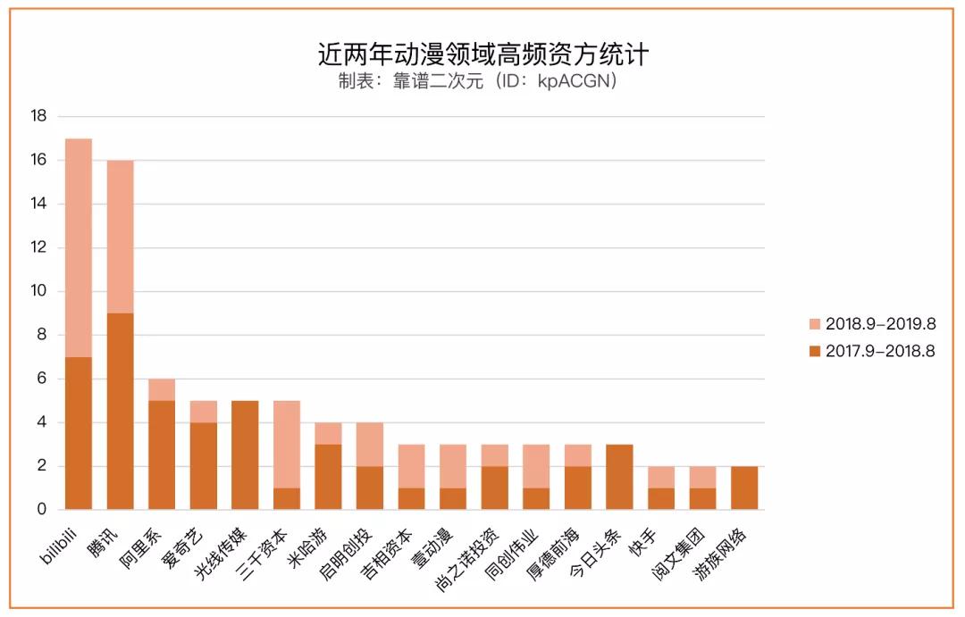 经过2018年底和2019年初的集中布局,B站成功超越腾讯,成为动漫领域近两年来投资数量最多的投资者。