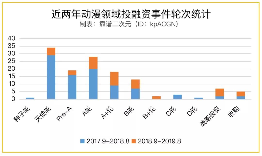靠谱编辑部(ID:kpACGN)以2018年8月为节点,盘点了前一年(2017.9-2018.8)及后一年(2018.9-2019.8)连续两年的131起动漫领域投融资事件,从公司细分行业、轮次、融资额、资方等多方面逐一分析,以期用最直观的数据呈现2年来的行业动态。