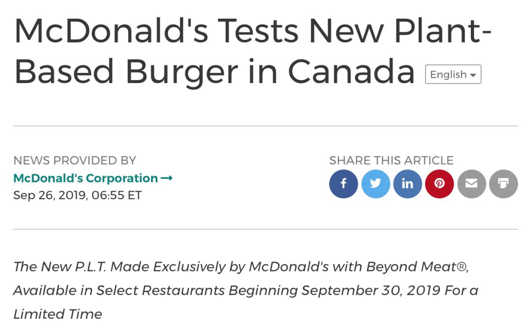 就在雀巢宣布推出人造肉新品的同一天,对这一风口仍持谨慎态度的麦当劳也“小心翼翼”地又迈出了一步。