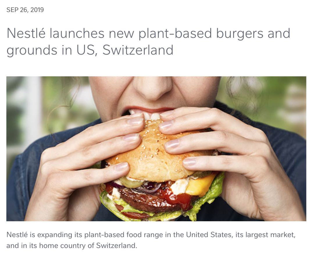 早在今年4月份“预告”过之后,雀巢在一份通报中正式宣布,该公司正在其最大市场美国及总部所在的瑞士市场推出更多的植物基食品,包括人造肉汉堡和人造肉碎肉,其原料和配方都经过定制以满足当地口味。