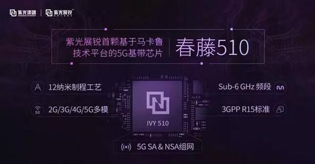 得益于展讯和锐迪科在射频领域的长期积累,展讯在5G元年就推出了基于台积电12nm的5G基带芯片紫光春藤510,尽管性能无法与高通、华为等大厂相提并论,但是也支持多项5G关键技术,单芯片统一支持2G/3G/4G/5G多种通讯模式,符合最新的3GPP R15标准规范,支持Sub-6GHz频段、100MHz带宽,是一款高集成、高性能、低功耗的5G基带芯片。同时支持5G SA独立组网、NSA非独立组网两种组网方式。