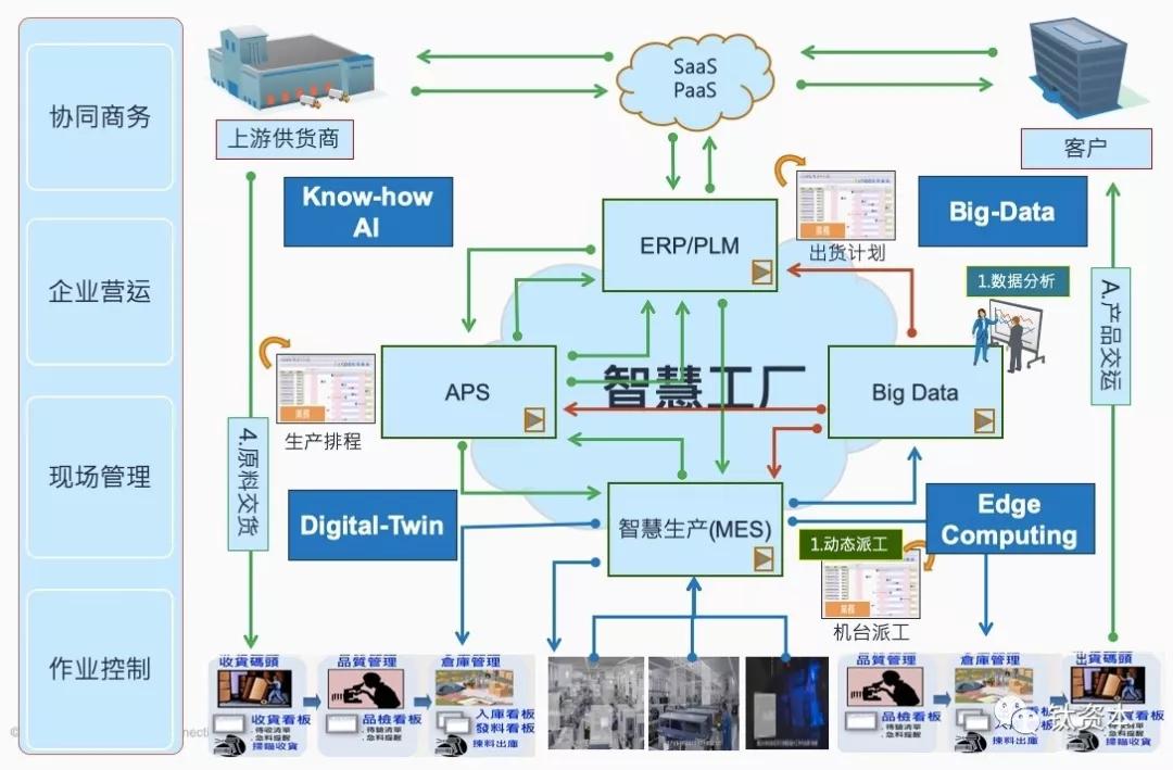 工业互联网的中间是智慧工厂,智慧工厂里有ERP、PLM、Big Data、APS、MES等系统,客户通过SaaS或者PaaS连入智能工厂,同时连接上游的供货商、连接物料,在工厂里完成制造后连接仓库、出货、快递等,形成一整套的流程。现在的智能制造都讲究定制化,几十万、上百万的消费者可能对冰箱、洗衣机的要求都不完全一致,但工厂的生产线就一条,就要不断地调整生产线,还要确保每个产品的工期。调整的依据就是在网络上传输的数据,如果没有高可靠性、高可用、实时的网络,那么数据就不知道传到了哪里,生产线没法再往下进行,后面的订单与流程就全部都耽误了,这时SD-WAN就是非常强有力的网络工具,能把企业网和工业控制网结合在一起。因此,智能工业网的核心是数据一层层及时传递而产生的价值,而高效传递数据、无缝接驳工业网是SD-WAN的一个优势。