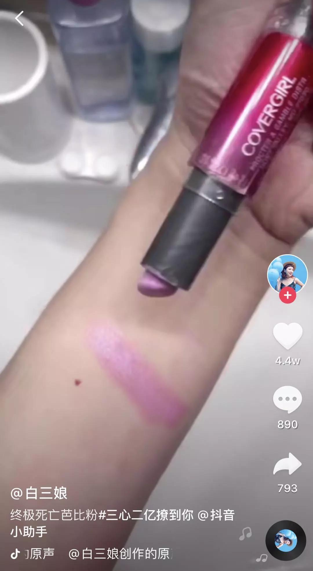 白三娘的视频曾引起抖音死亡芭比粉试色风潮
