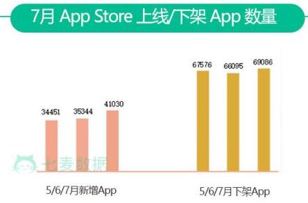 纵观这半年来的App Store,苹果对上架应用的监管越发严格,下架和清榜的应用持续增多。据七麦数据显示,今年 7 月,App Store共计下架产品共计69086款,整体下架产品数量依旧庞大,游戏类App下架数量最多,共计10195款。