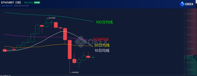 OKEx行情数据显示,本周,ETH 价格一度跌至 142 美元,周内收于 167.28 USDT,环比下降 20.5%。