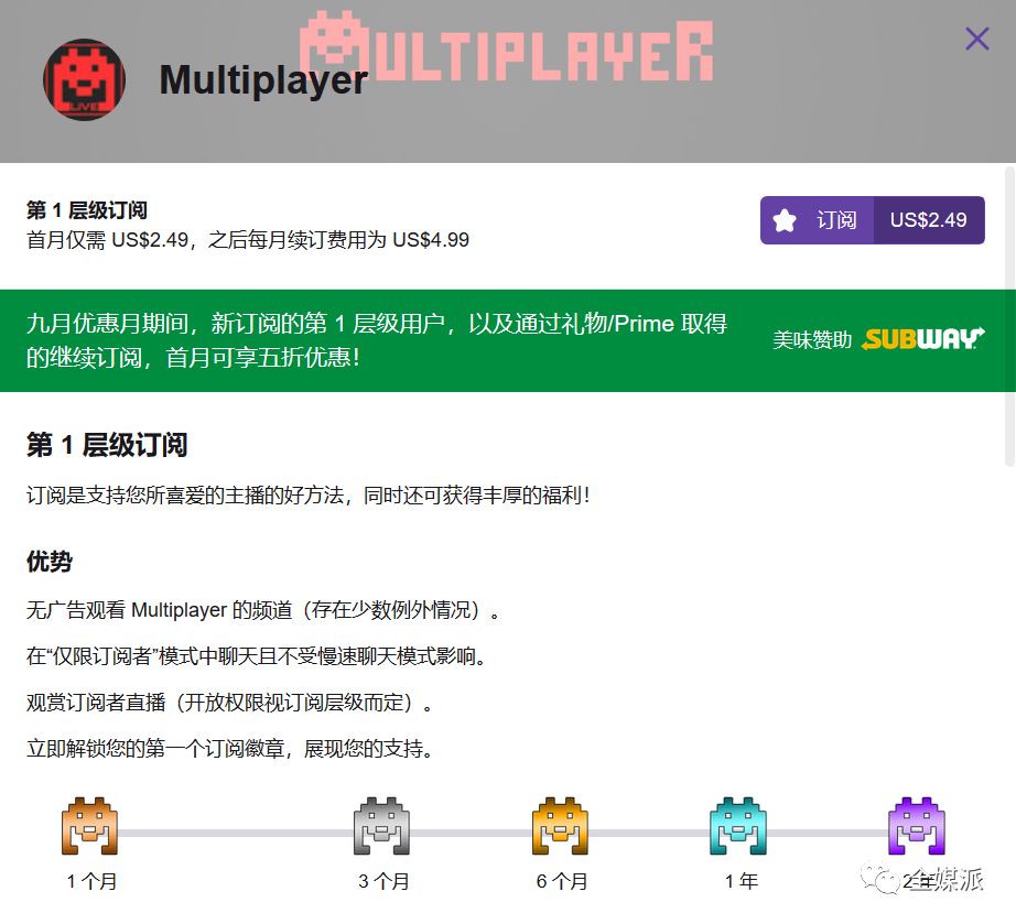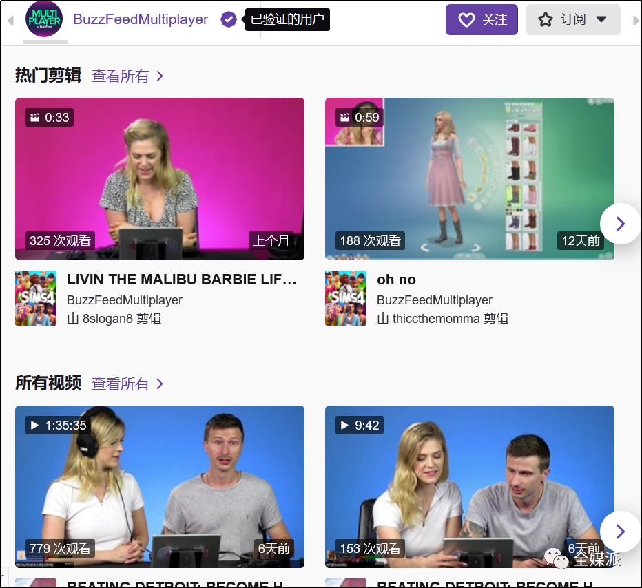 Twitch中BuzzfeedMultiplayer频道的订阅页面