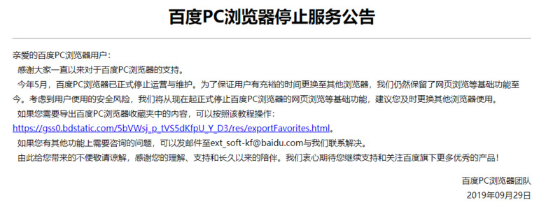 百度PC浏览器正式宣布停止服务