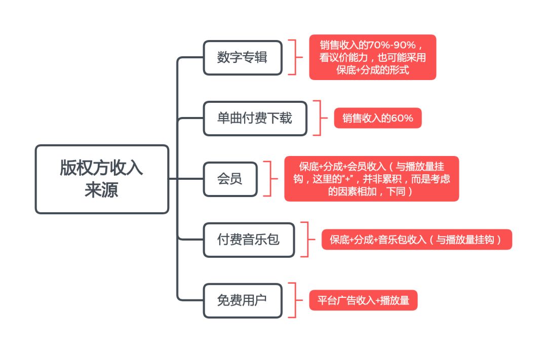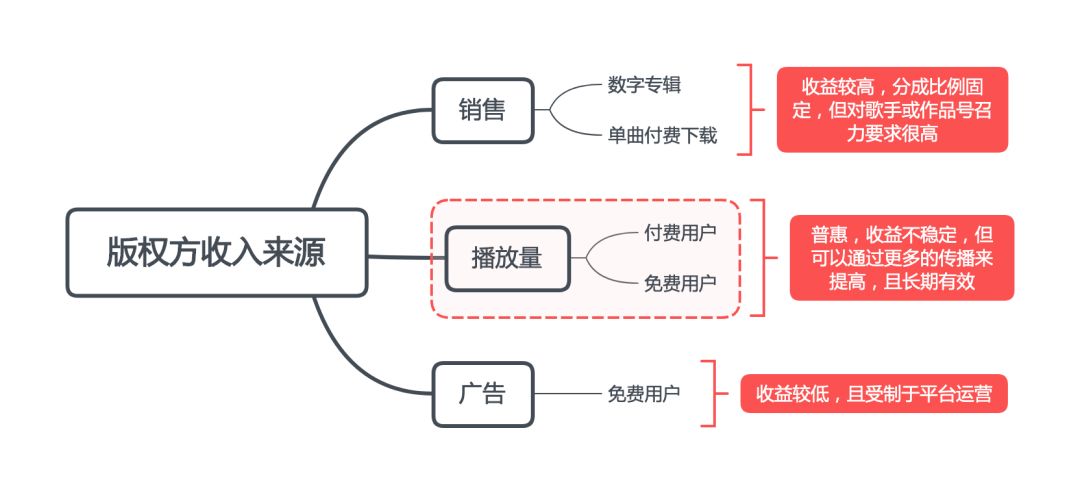 而且,请注意,数字专辑还是单曲付费下载模式下,版权方除了数字专辑和下载收入之外,也一样会获得会员、音乐包和免费用户带来的播放收入。