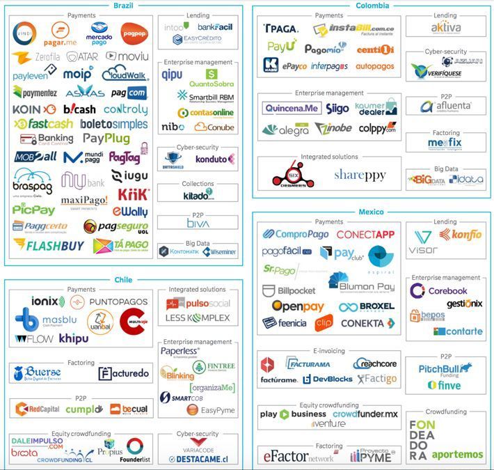 拉美部分Fintech公司分类概览, 来自Finnovista