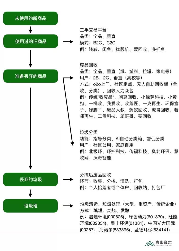 变成垃圾的过程本质是商品价值下降的过程,因此拆解得再细致一些,我们会得到一条完整的涉及多个行业的“贬值链”。