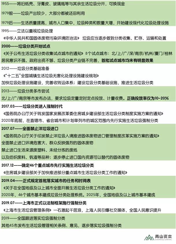 这里本是创业者注意力的”贫瘠之地“。前端清运、后端处理基本是政府、大型重资产传统企业的领域,中间的回收部分则零散分散,由各种个体户、小公司充斥。近年频繁的新政策围绕两条关键的线,一是垃圾分类,二是洋垃圾进口。17年开始大量出现的带有回收概念、垃圾分类概念的企业,基本都来源于洋垃圾进口限制政策里关于废纸的规定。