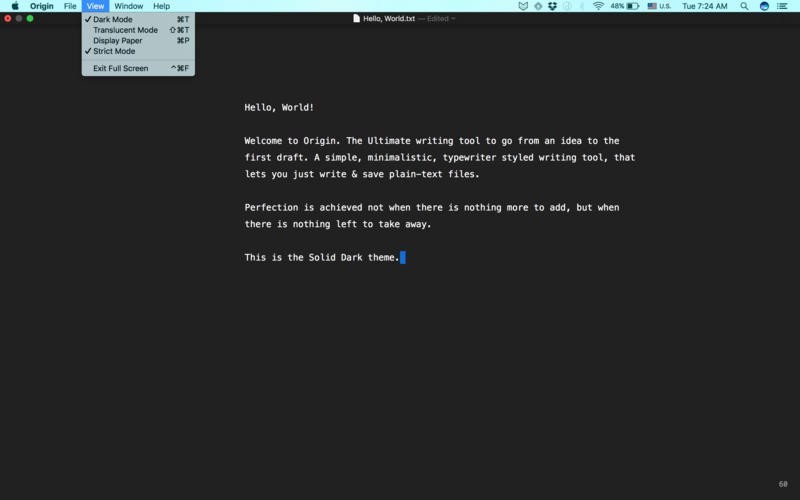 Origin让你专注于写作,在这个APP里,你只能一直写下去,不能删除。而且Origin的界面里除了单词,别的什么也没有,让你无从分心。免费版有字数限制,每个文档只能写250个单词,不过免费版不限制文档数量。