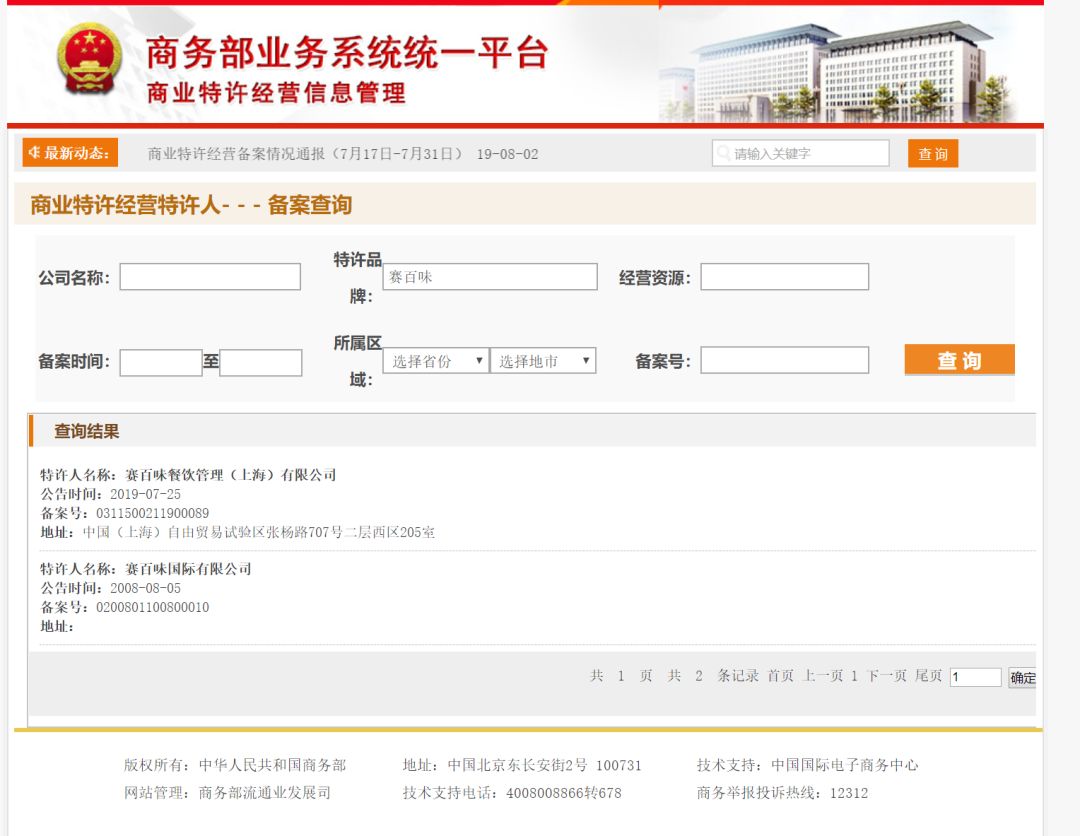 直接查商业特许经营信息即可,记得找链接里面带gov(政府机关)的网站。