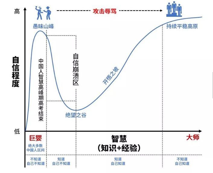 是的,人的一生总是在经历着一次次的“不知道自己不知道”、“知道自己不知道”、“知道自己知道”、“不知道自己知道”的巨婴之旅。