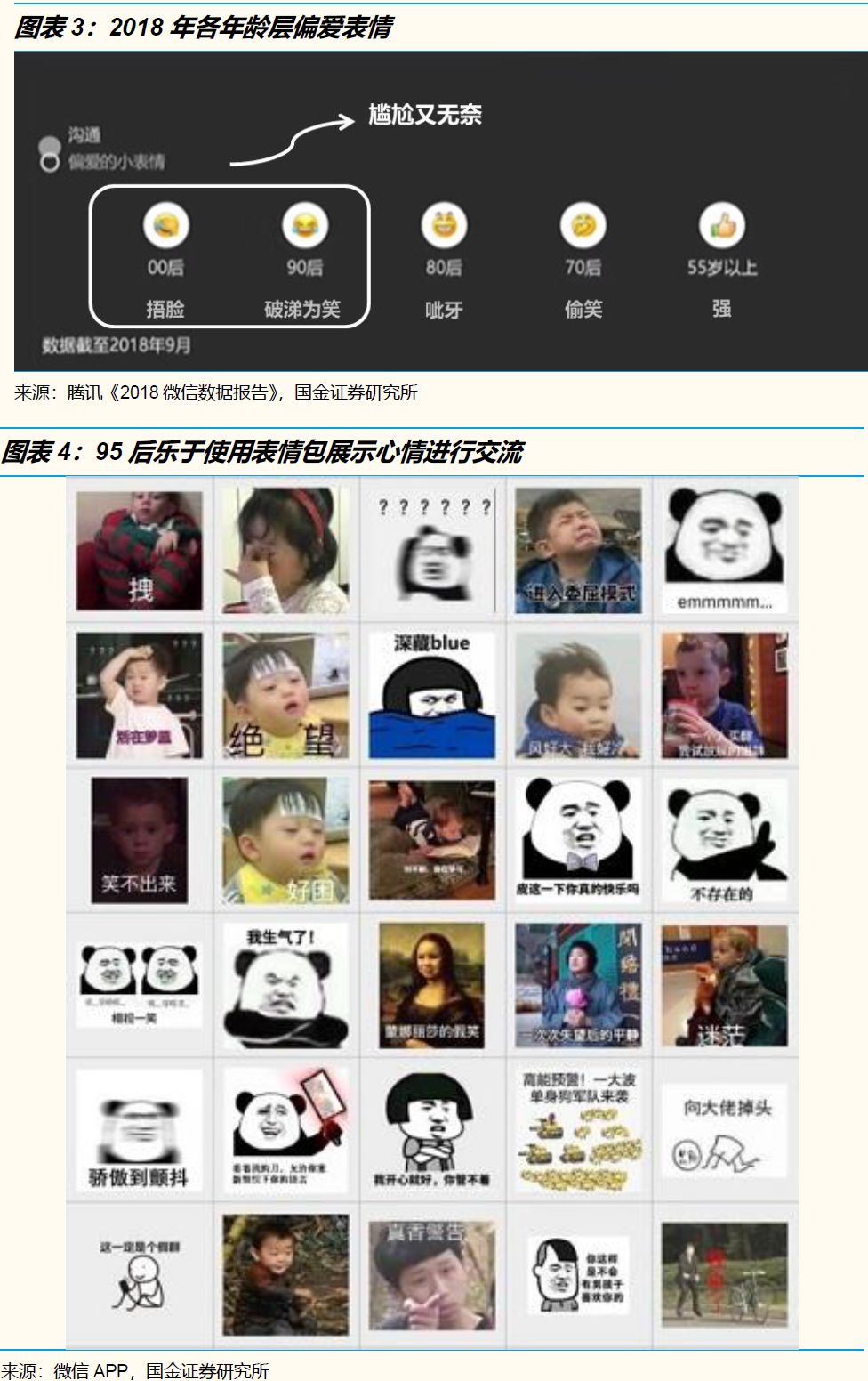 95后独特语言体系的形成,进一步加深了沟通的壁垒。除了独特的通讯工具,95后群体的封闭感意识还通过独特的语言体系实现——特有风格表情包和语言缩写体系。根据腾讯发布的《2018微信数据报告》,00后和90后偏爱“捂脸”和“破涕为笑”两个表情,在微信应用场景下,往往表达一种“尴尬无奈又不失礼貌”的态度,这也是他们与上一个年龄段人群社交时的常态。