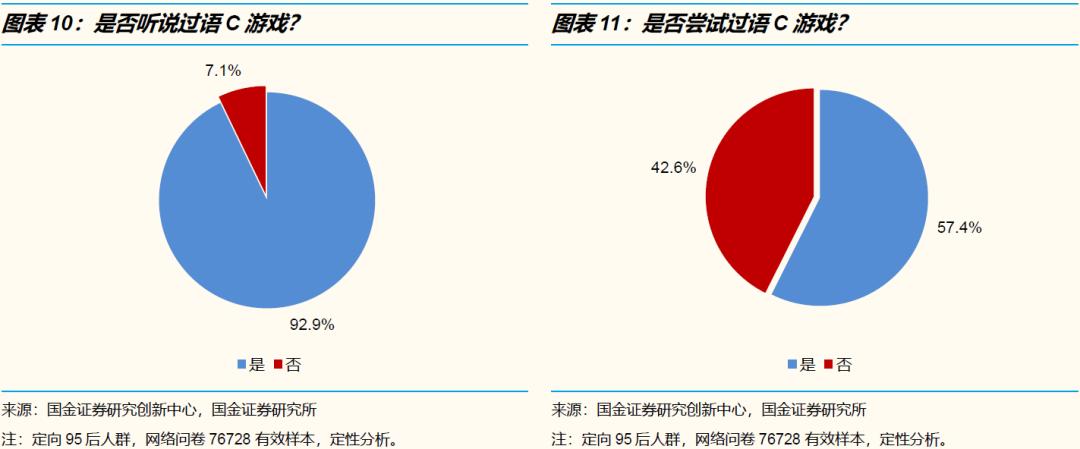 根据我们对95后人群的问卷数据,被访者中有92.9%的人听说过语C游戏,有57.4%的人尝试过语C游戏。有趣的是,许多关键词都与QQ有关:CQY代表“处Q友”(加QQ好友),CDX则代表“处对象”(一般要以CQY为前提);“养火”代表QQ好友之间的互动越频繁火花越大;NSS代表“暖说说”,即在QQ空间互相点赞和留言。