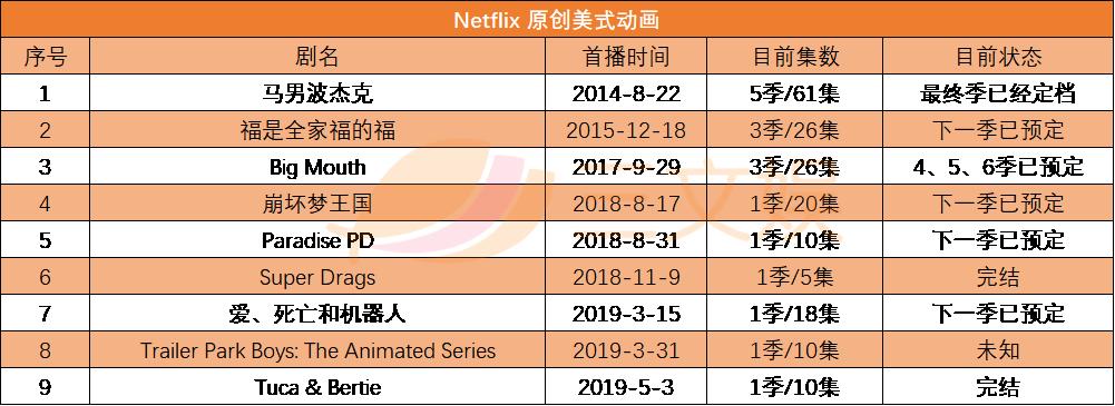 从上面几张表格中可以看出,Netflix在2016年以后加快了制作原创动画,尤其是儿童动画的脚步。过去,Netflix的原创内容一直以刺激大胆的电视剧著称,针对儿童的内容相对较少,通过大量制作动画内容,Netflix可以快速补齐这一短板。