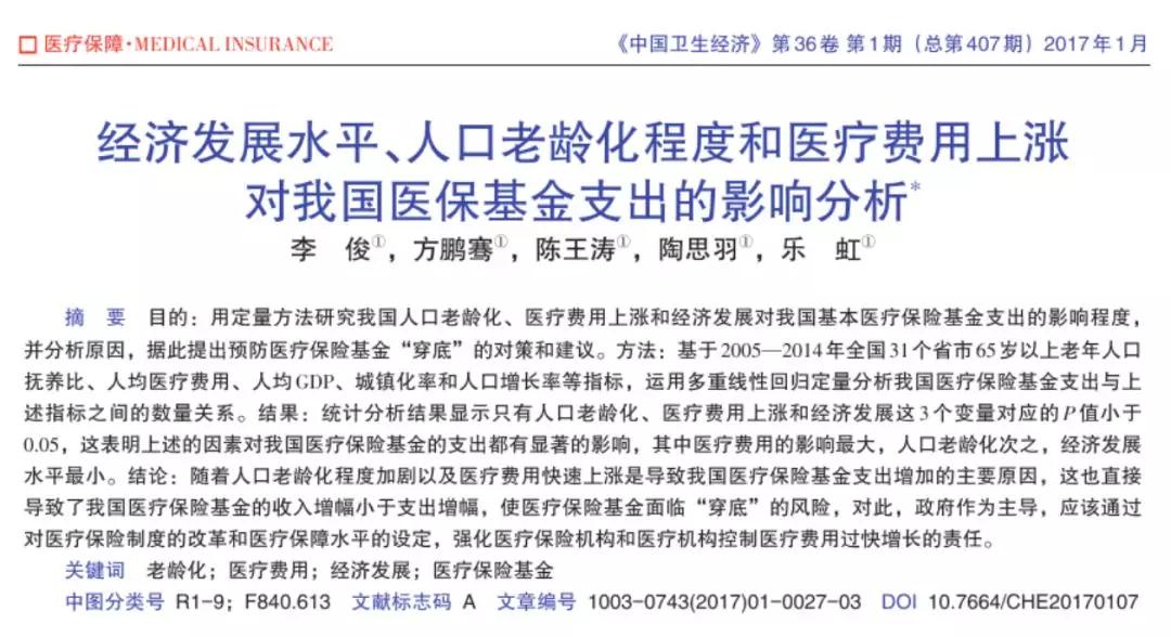 在2011年出现医疗保险基金收入增幅低于支出的现象,《中国卫生经济》提到,如果不做积极应对,2024年城镇职工医保基金将出现7353亿元赤字,其中人口老龄化下的疾病负担占显著影响。