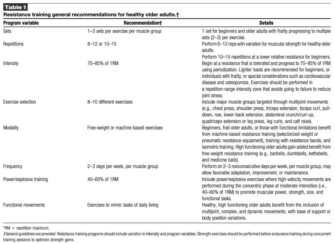■对老年人抗阻力训练的一般建议,来源:《Resistance Training for Older Adults》
