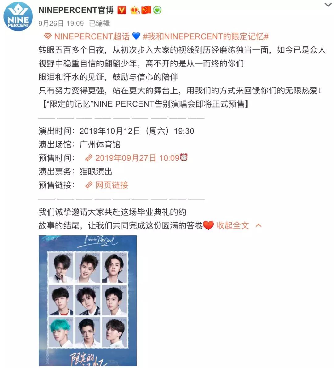 NINE PERCENT的解散,在国庆档假期的尾声为热搜增添了一些分别的色彩。