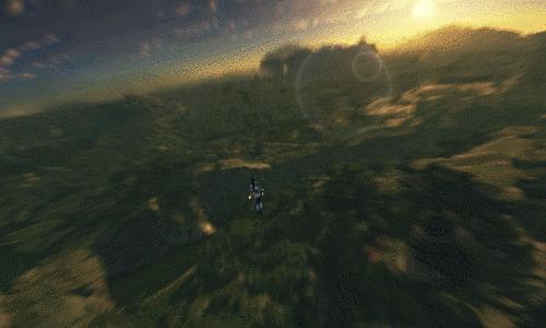 锁定这两点后,我们开始找参考和灵感。我们看到了一个飞行模拟游戏,它会有很强的抛离镜头的感觉: