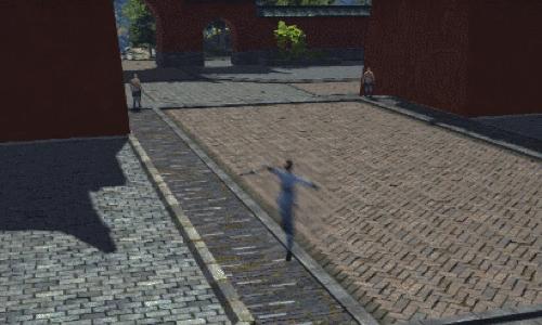 我们在前期为了赶版本测试,先上了一版最基础的,只能满足功能的轻功,角色可以跳跃,前冲,看起来也像那么个样子。