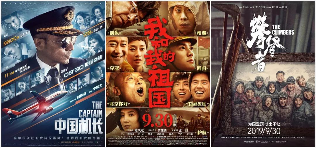《我和我的祖国》《中国机长》《攀登者》三部主旋律献礼片,组成了2019国庆档的“第一梯队”,也是创下国庆档票房纪录的主要功臣。