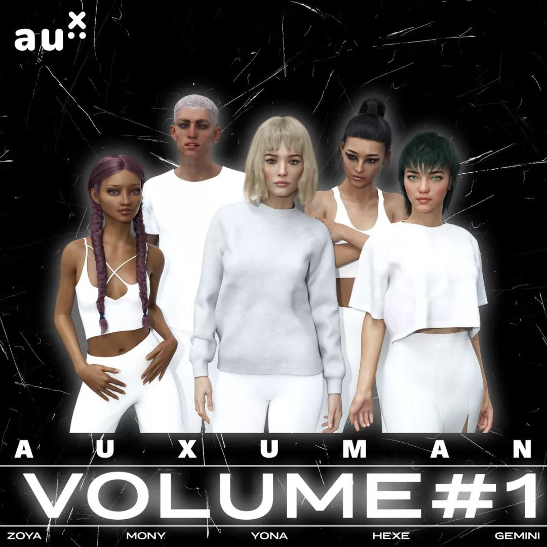 《Auxuman Vol.1》里有五位艺人的作品,四位女歌手(Yona、Gemini、Hexe、Zoya),一位男歌手(Mony)。