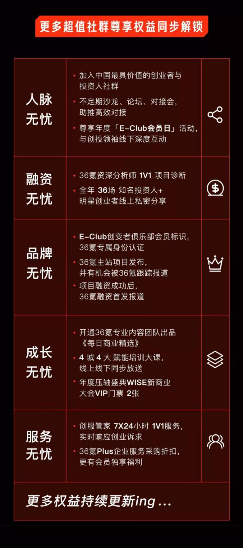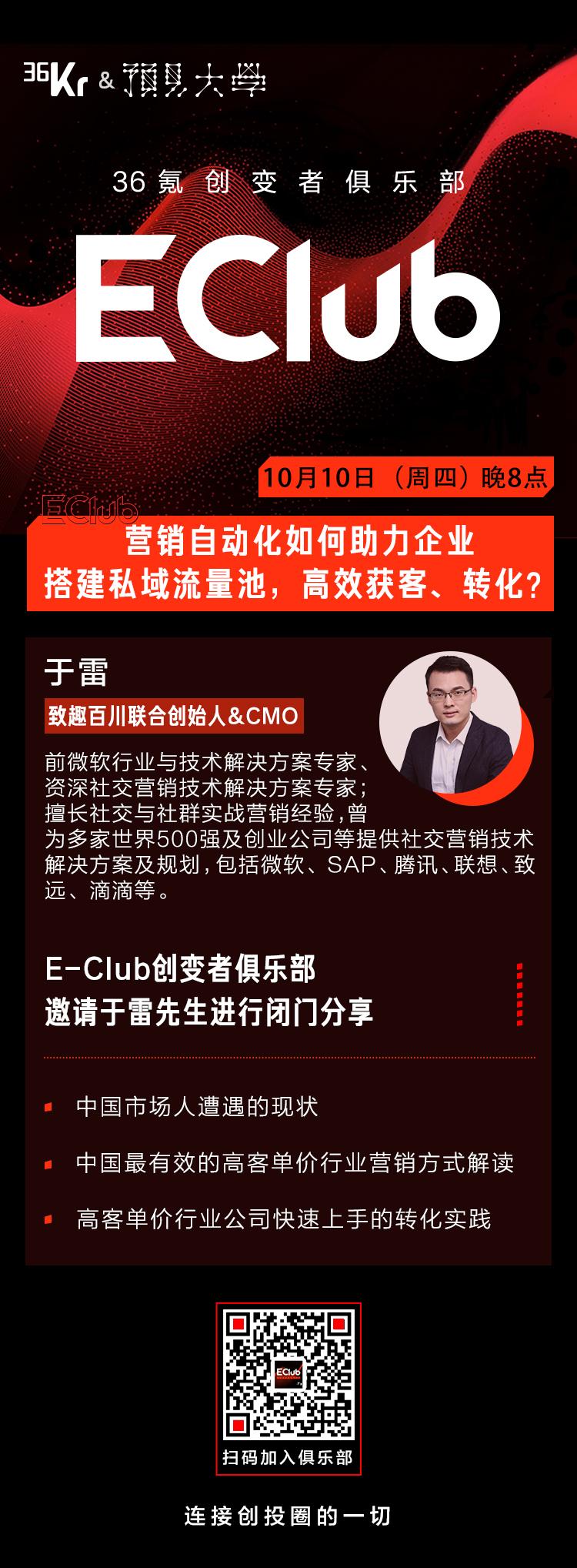 欢迎成为36氪[E-Club创变者俱乐部]一员,享受36氪生态资源带来的长期赋能。