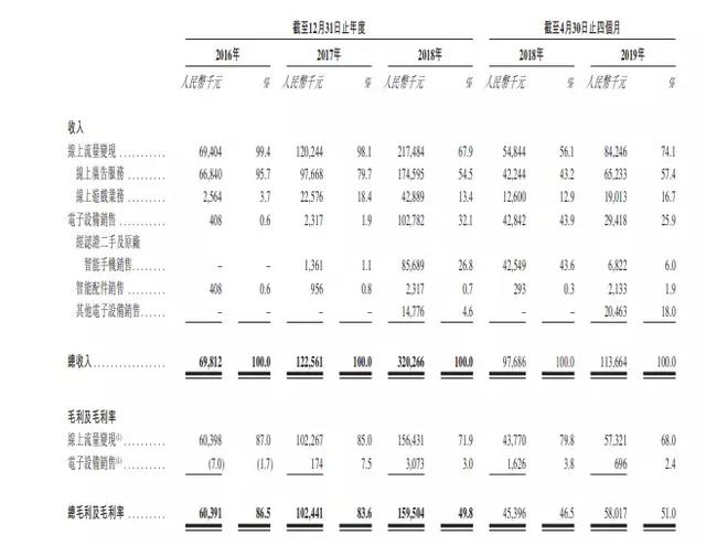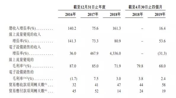 再就是盈利增长放缓。2016-2018年及2019年前4月的流量变现业务同比增速,分别为141.3%、73.3%、80.9%、53.6%,放缓趋势明显。流量变现业务毛利率2019年也有所下滑,2016-2018年、2018年前4月及2019年前4月,该业务毛利率分别为87%、85%、71.9%、79.8%、68%。