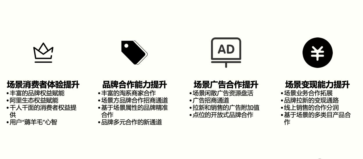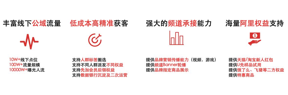 (4) 过去品牌的主要电商生意经营都在手淘、手猫这些阵地上,现在阿里希望能够把自己生态内更多与消费接触的流量端口开放给品牌,比如说支付宝、高德、优酷,这些阿里生态的客户端覆盖了消费者很多线下出行、娱乐、消费的场景。 我们希望在这些触点上,也能够让品牌与消费者接触。这种开放,不需品牌再去各个app上新开一个店铺或者开发一个小程序,通过品牌轻店铺的多端投放功能就可以轻松实现,一个店铺可以同时影射在阿里生态的多个客户端上,所有的数据都能够回流到品牌的旗舰店后台、数据银行,实现品牌的跨端运营,真正在多场景下把消费者身份做唯一识别,而不是割裂对待。