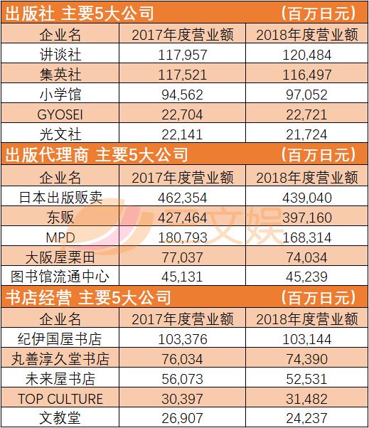 2018年日本3740家出版关联企业的营业额为41884.39亿日元,换算成人民币就是2782亿元,每家公司的营业额不到7500万元。