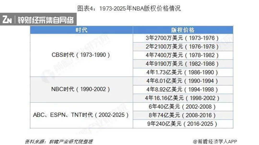 最近20年NBA版权费用变化,图片来源于前瞻产业研究院