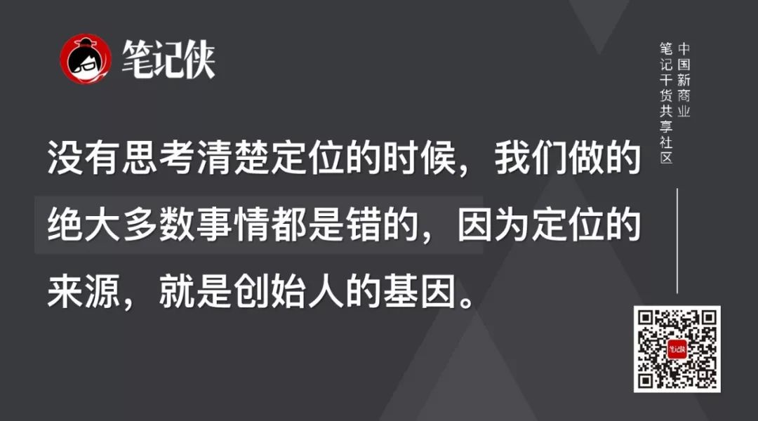 这个案例让我们思考到:当我们还没有想清楚定位的时候,所做的绝大多数事情都是错的,因为定位的来源是创始人的基因。