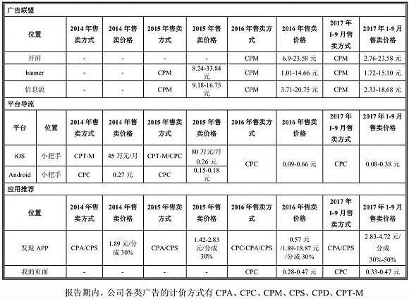 2014 年至 2017 年 1-9 月,墨迹天气的推广费用分别为 678.37万元、3079.46万元、6716.03万元和 5556.42 万元,同比增长幅度以倍数计算。“公司存在如果未来推广单价大幅上升,导致推广成本上升进而导致公司净利润下滑的风险。”