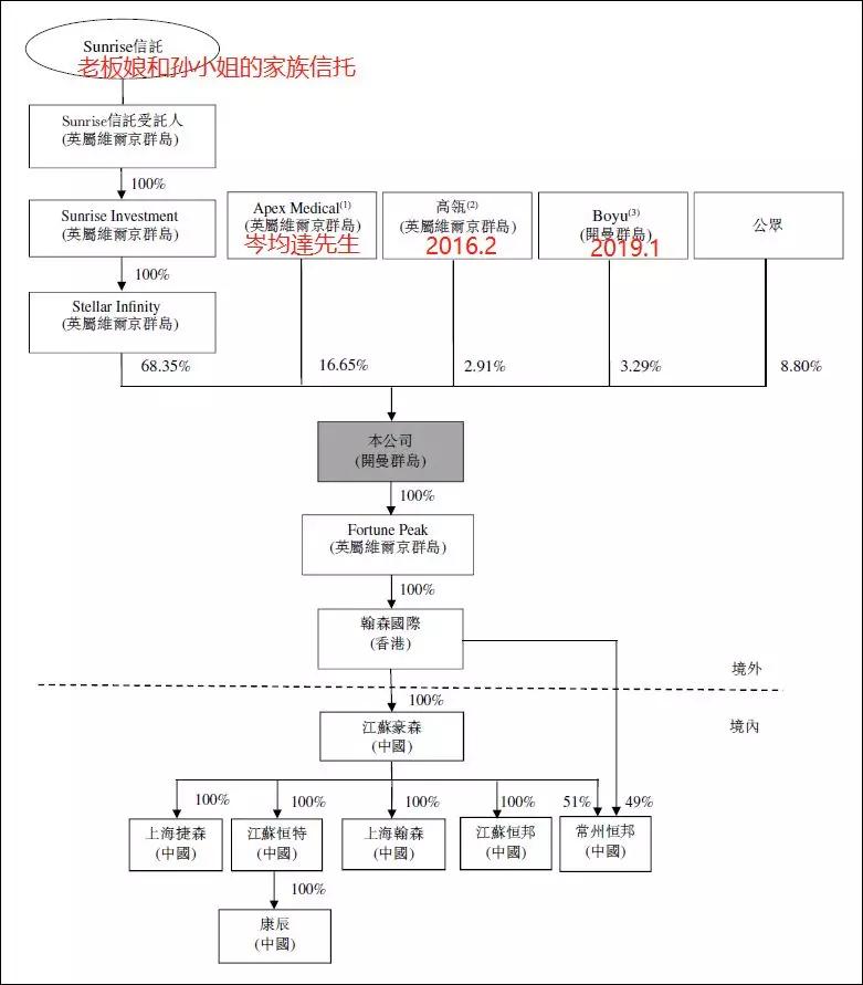 第一笔40亿股息通过董事会时,老股东是老板娘钟慧娟的家族信托,岑均达先生和高瓴资本;第二笔17亿股息通过董事会时(当时未公布具体金额),老股东新进一位注册于开曼群岛的Boyu公司(专为投资翰森而成立)。